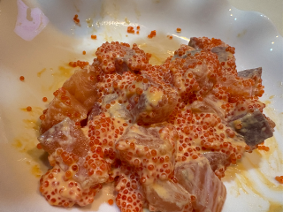 とびっ子とサーモンでサラダした???